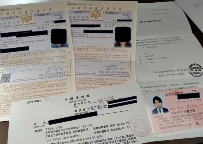 許可取得後に在留カード、在留資格認定証明書をお渡しいたします。