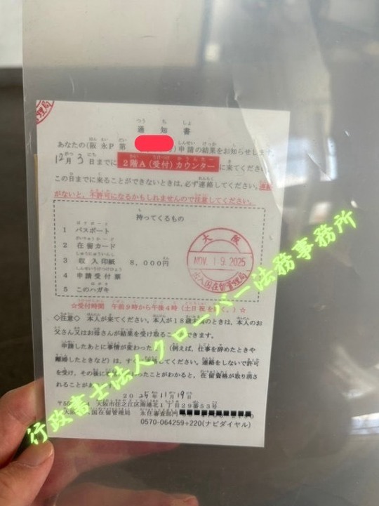 永住申請2025年12月3日付で許可のご依頼者のお声