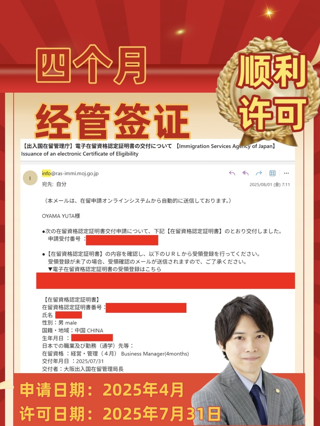 本公司在永久居留签证、配偶签证、工作签证和经营管理签证的申请方面有着丰富经验。