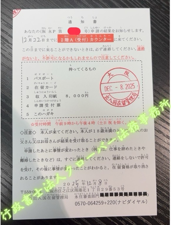総合的な在留審査を含む関西6府県の拠点として混雑しやすい点にご注意ください 。