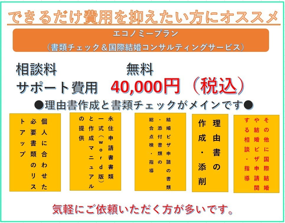 配偶者ビザ申請において明確な料金設定をしております。