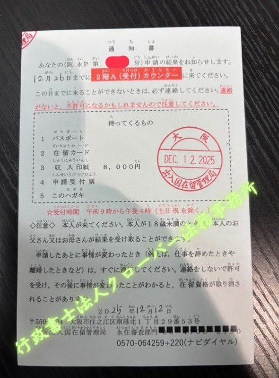 この度は永住権の申請に助けて頂き誠にありがとうございました!